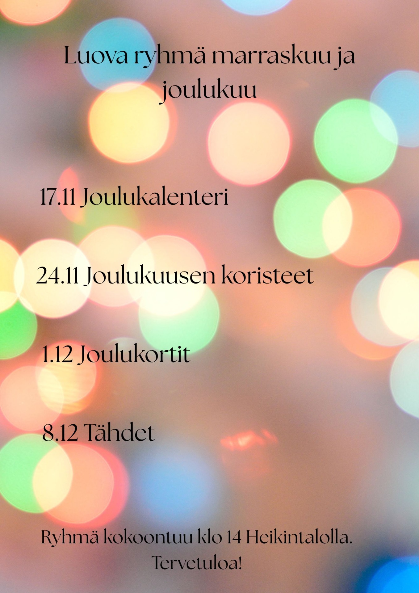 Heikintalon toimintaan osallistuminen on maksutonta ja vapaaehtoista.