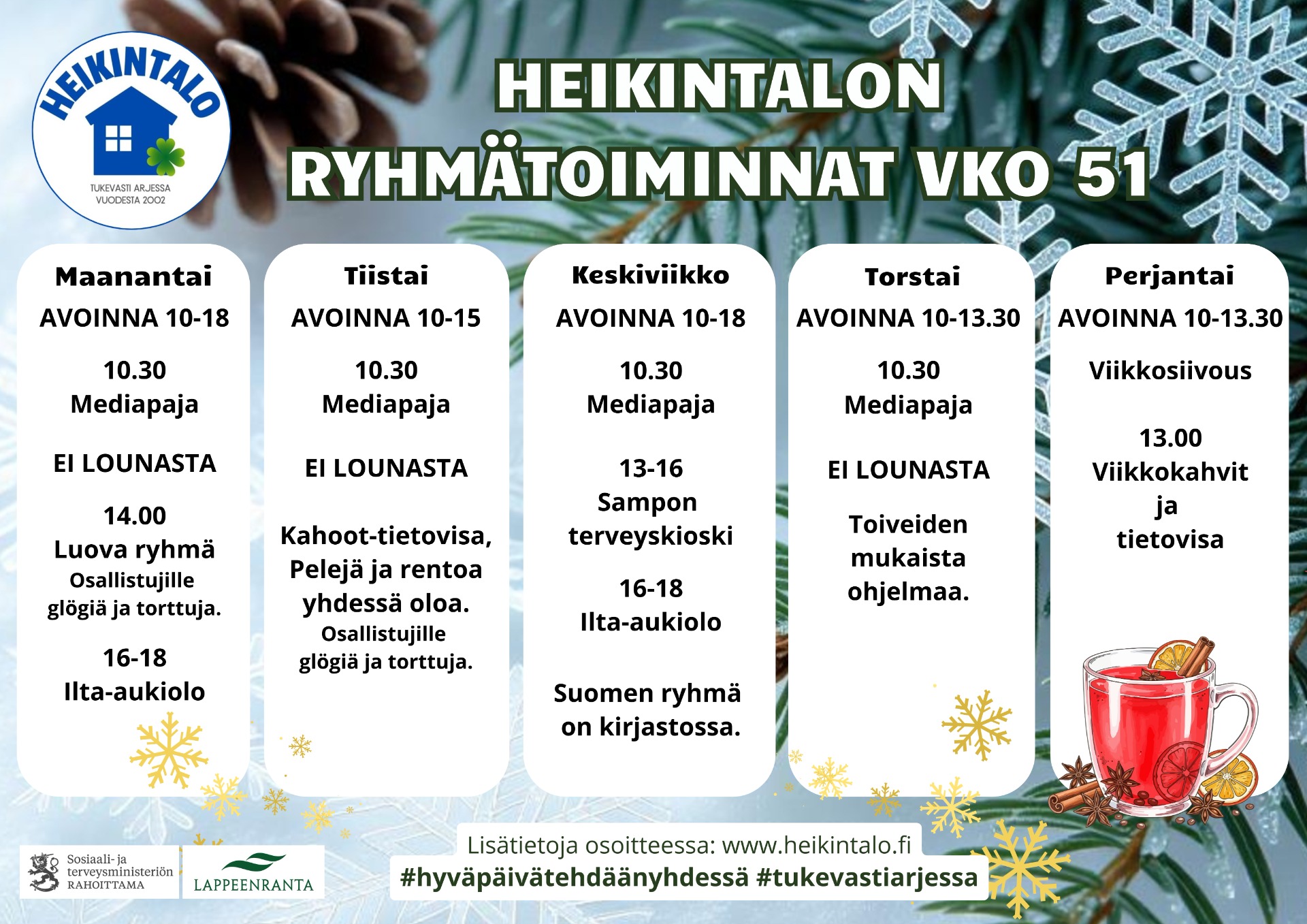 Maanantaisin ja keskiviikkoisin klo 16.00-18.00