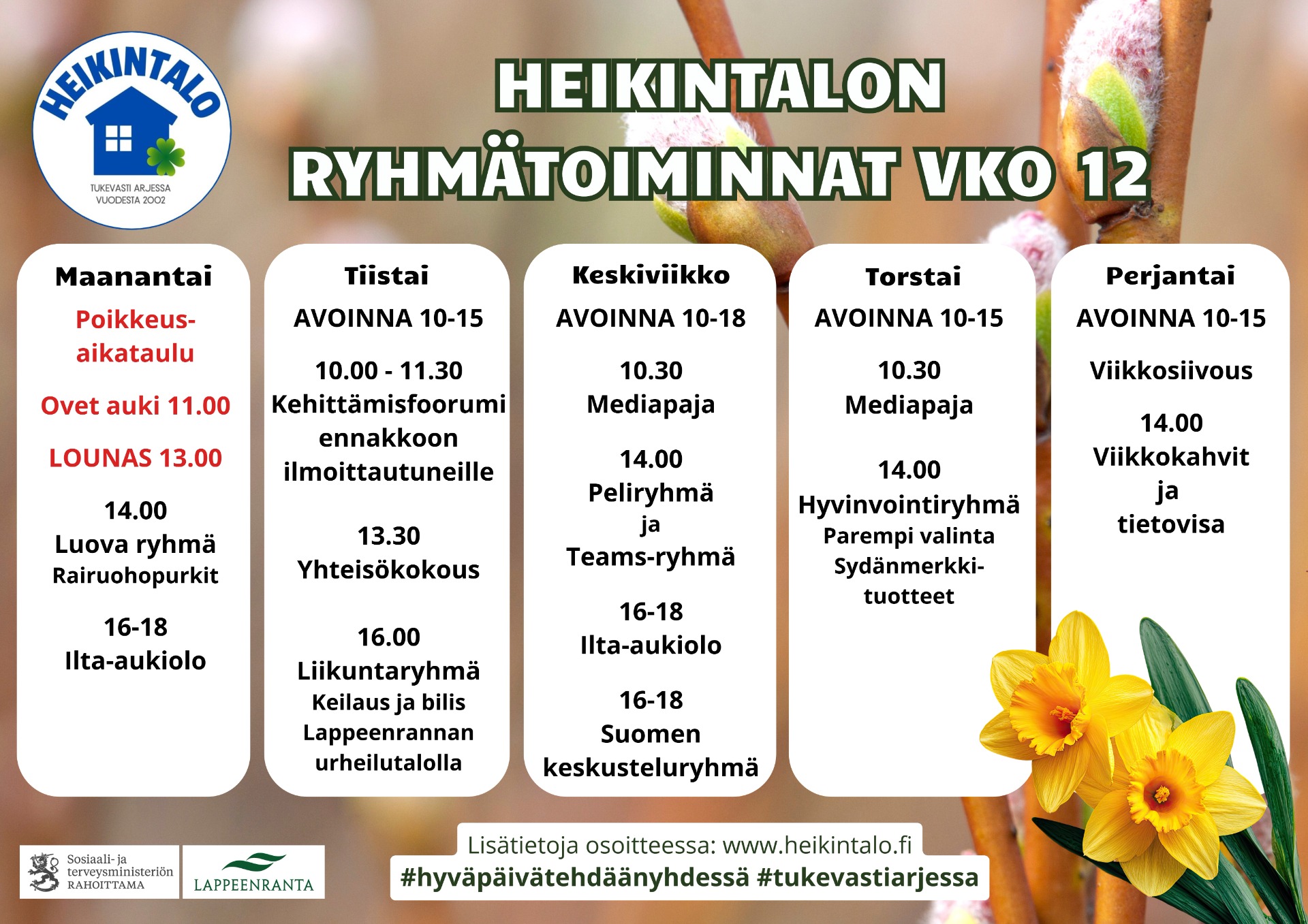 YHTEYDENPITO toimintaan osallistujiin ma-pe puheluin, tekstiviestein, WhatsAppilla ja sähköpostitse.